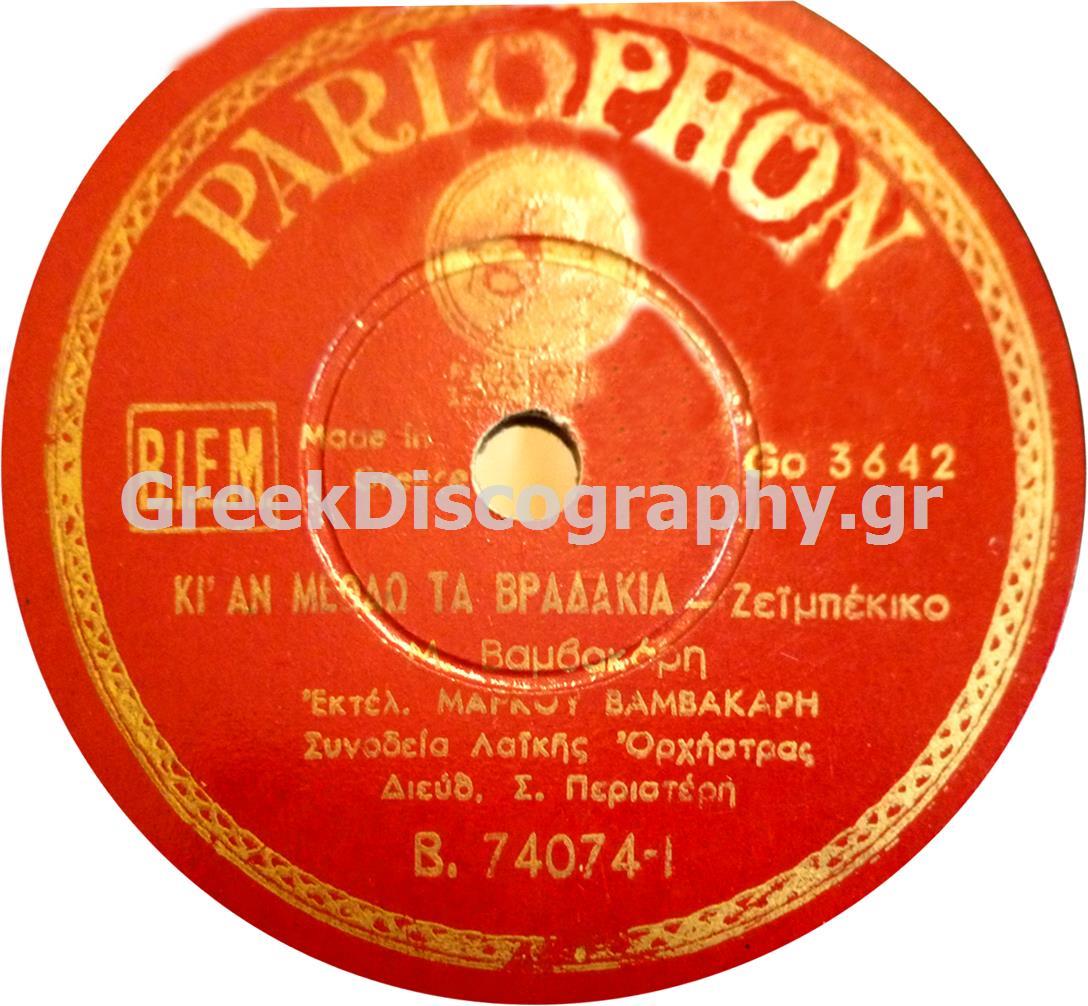 • 6117. Κι αν μεθάω τα βραδάκια - Βαμβακάρης Μ. - Βαμβακάρης Μ. - B-74074
