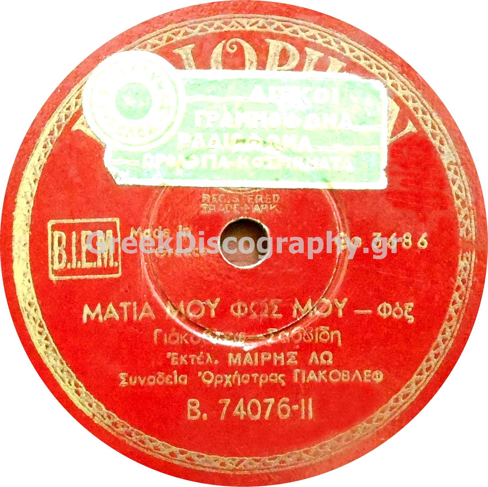 B-74076 ΜΑΤΙΑ ΜΟΥ ΦΩΣ ΜΟΥ