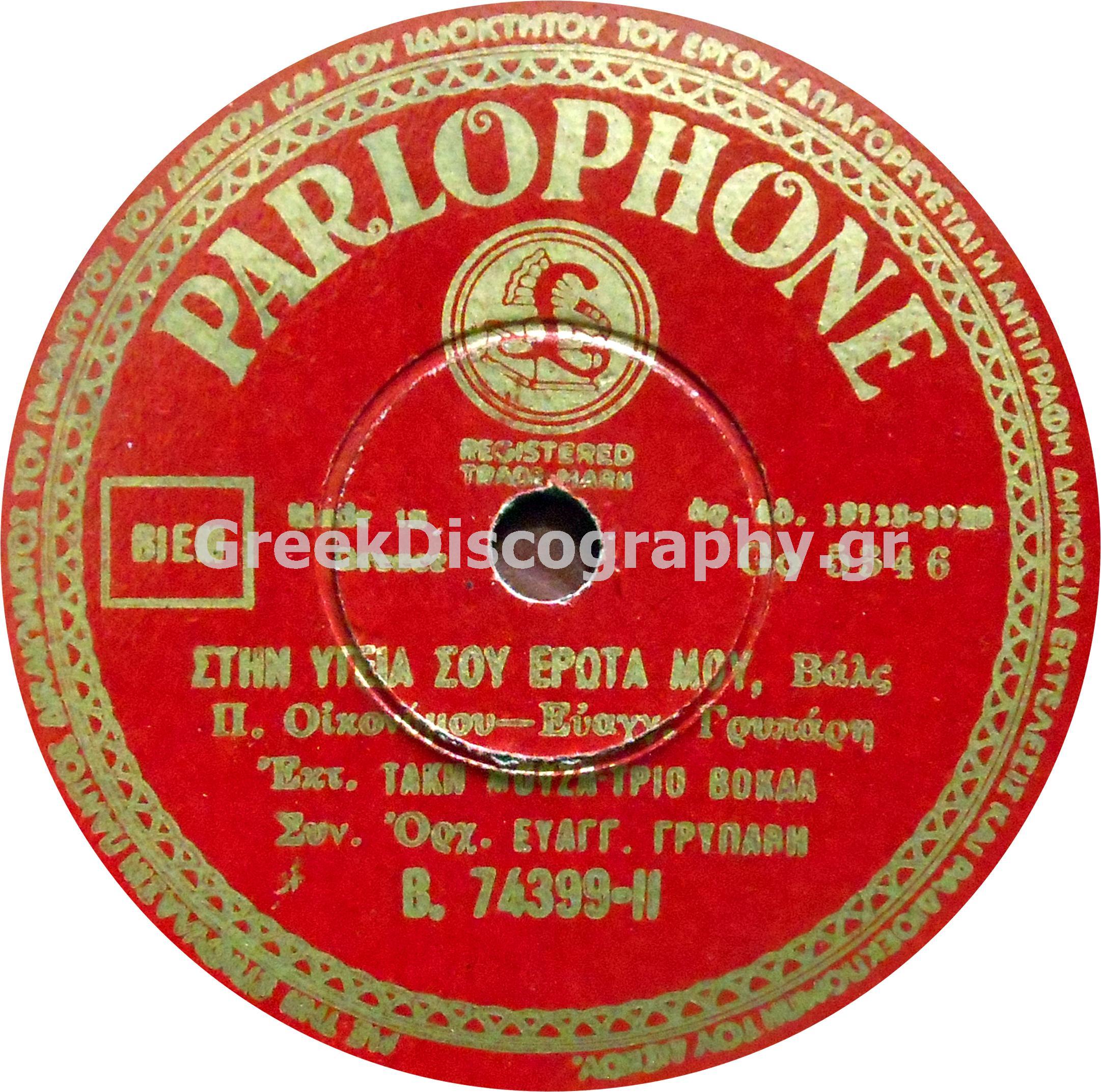 B-74399 ΣΤΗΝ ΥΓΕΙΑ ΣΟΥ ΕΡΩΤΑ ΜΟΥ