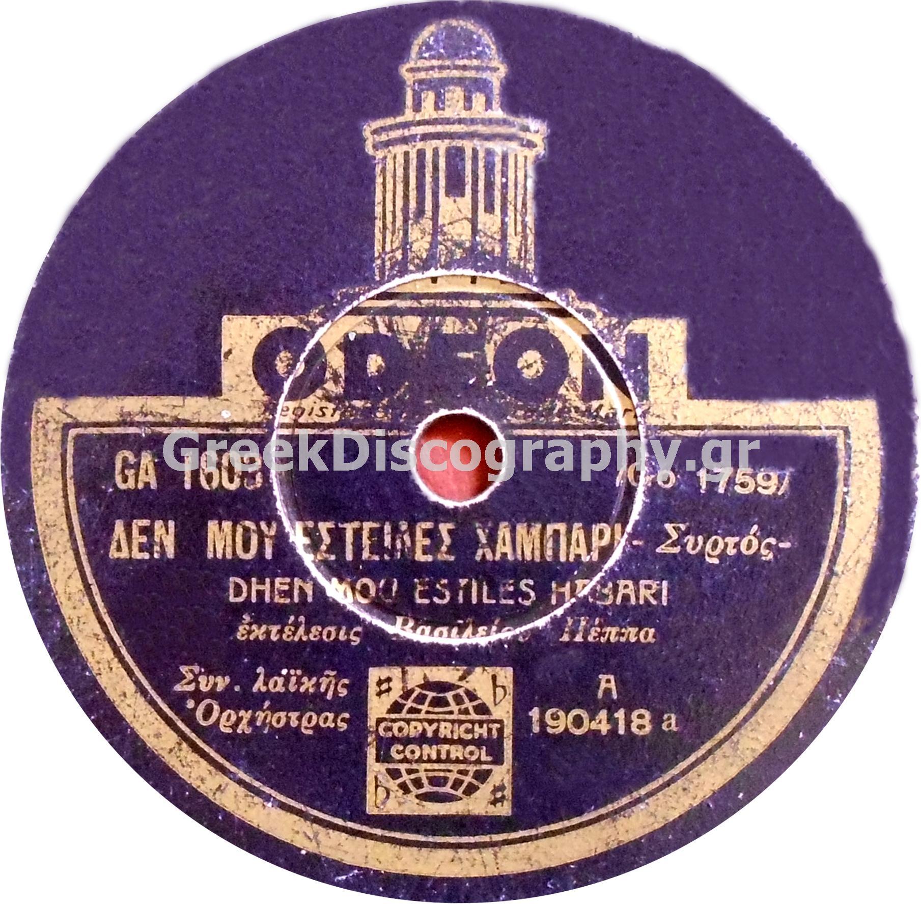 • 13982. Δεν μου έστειλες χαμπέρι - _ΠΑΡΑΔΟΣΙΑΚΑ-ΔΗΜΟΤΙΚΑ - Πέππας Β. - GA-1603