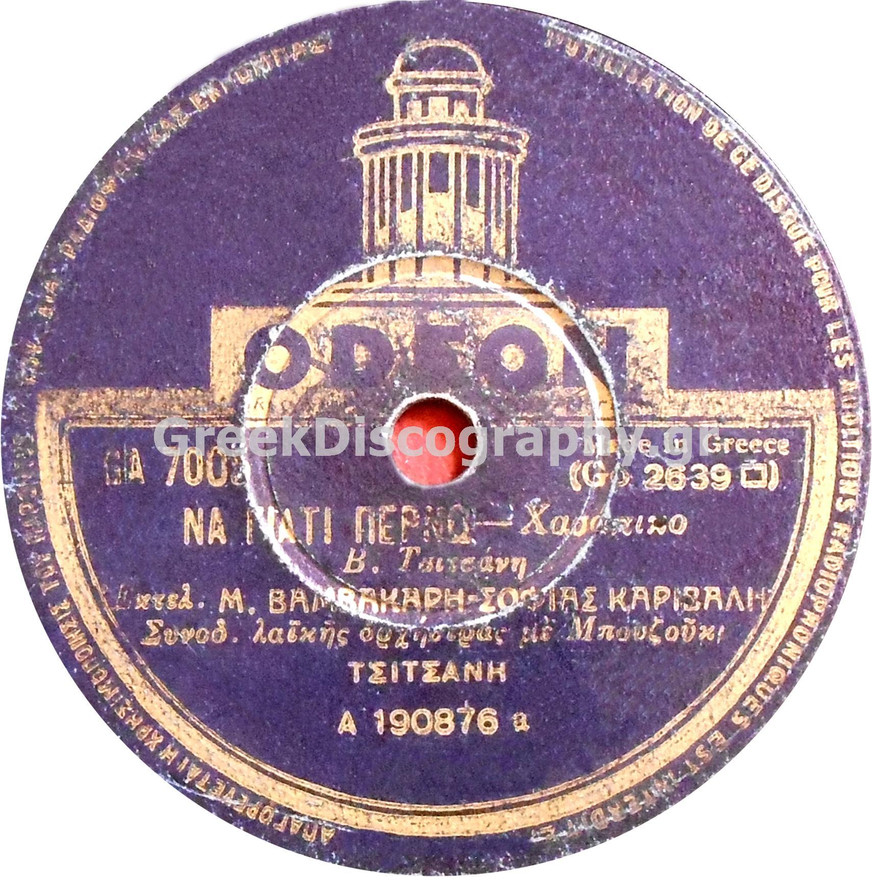 • 6048. Να γιατί περνώ (Να γιατί γυρνώ μες στην Αθήνα) - Τσιτσάνης Β. - Βαμβακάρης Μ. - GA-7005