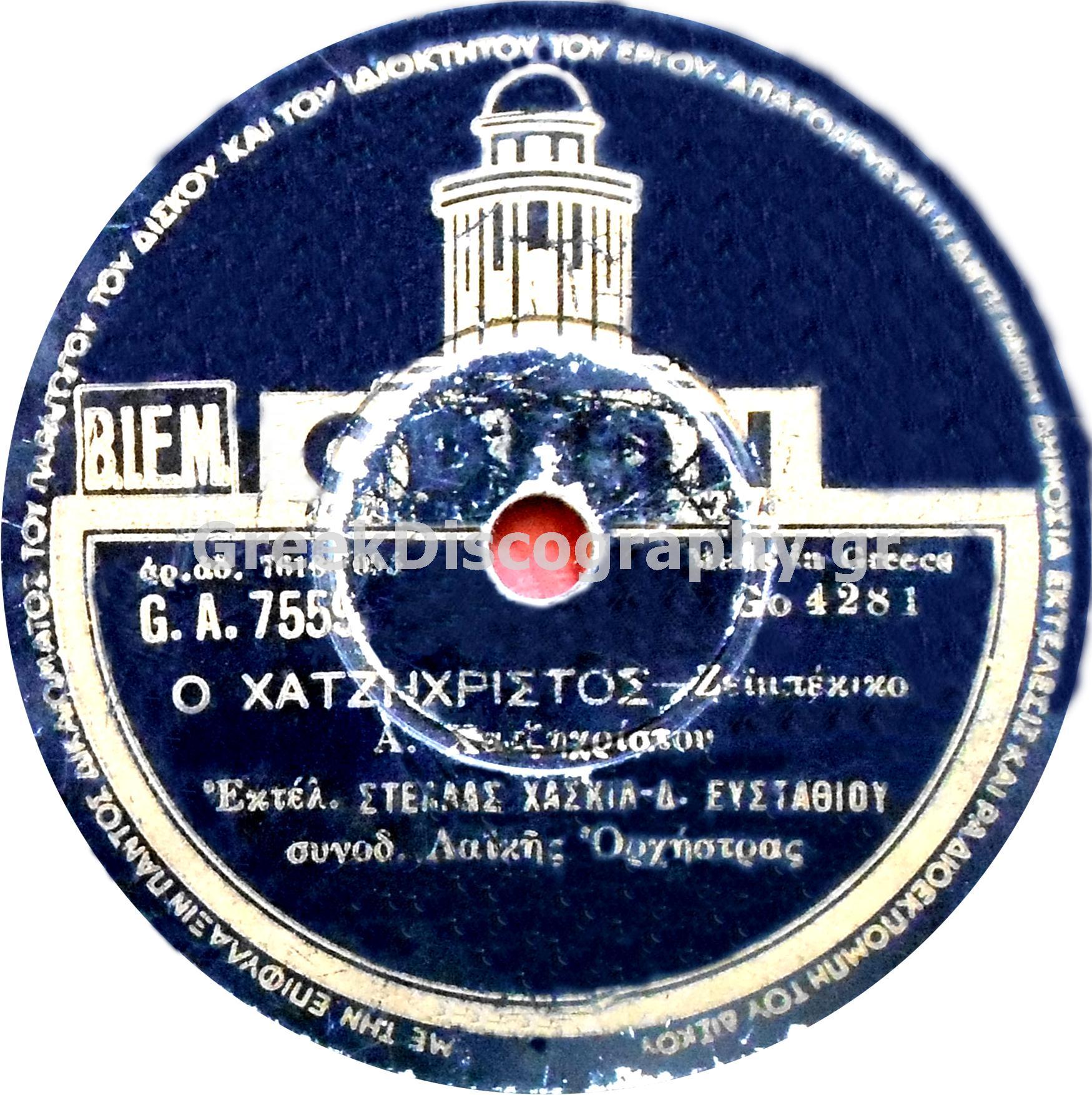 • 10532. Ο Χατζηχρήστος (Ήρθαμε να γλεντήσουμε) - Χατζηχρήστος Α. - Χασκήλ Σ. - GA-7559