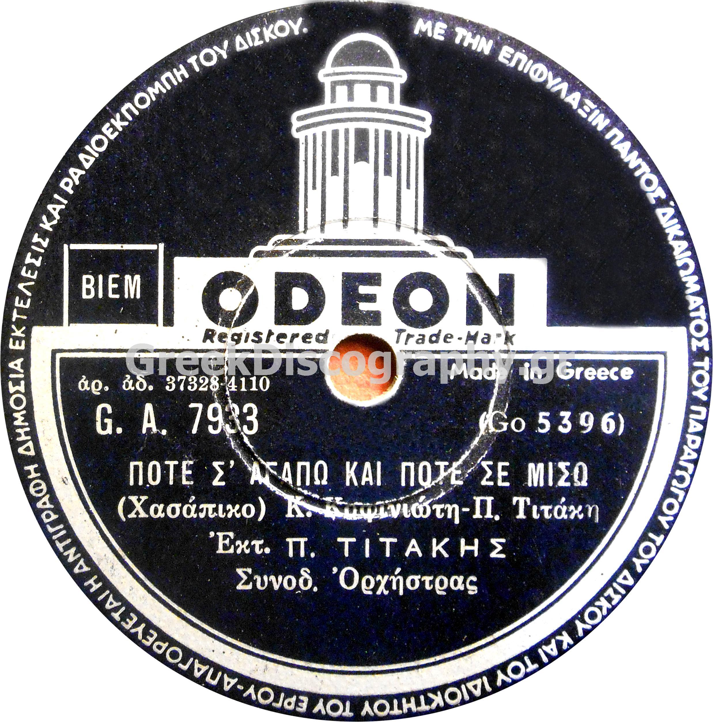 GA-7933 ΠΟΤΕ Σ ΑΓΑΠΩ ΚΑΙ ΠΟΤΕ ΣΕ ΜΙΣΩ