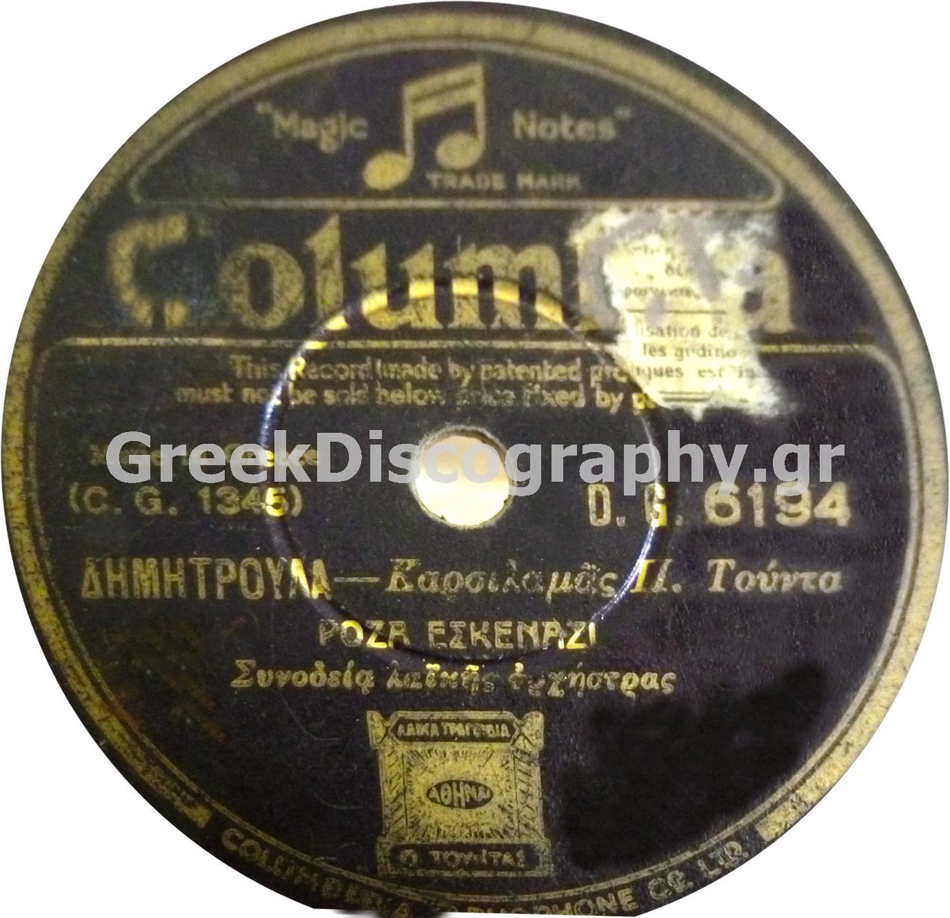 • 3168. Δημητρούλα μου - Τούντας Π. - Εσκενάζυ Ρ. - DG--6183-ΔΗΜΗΤΡΟΥΛΑ----DG-6194----DG-6234
