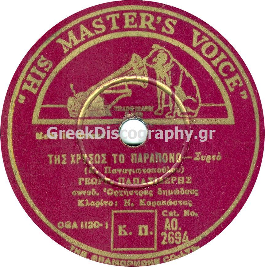 AO-2694 ΤΗΣ ΧΡΥΣΩΣ ΤΟ ΠΑΡΑΠΟΝΟ