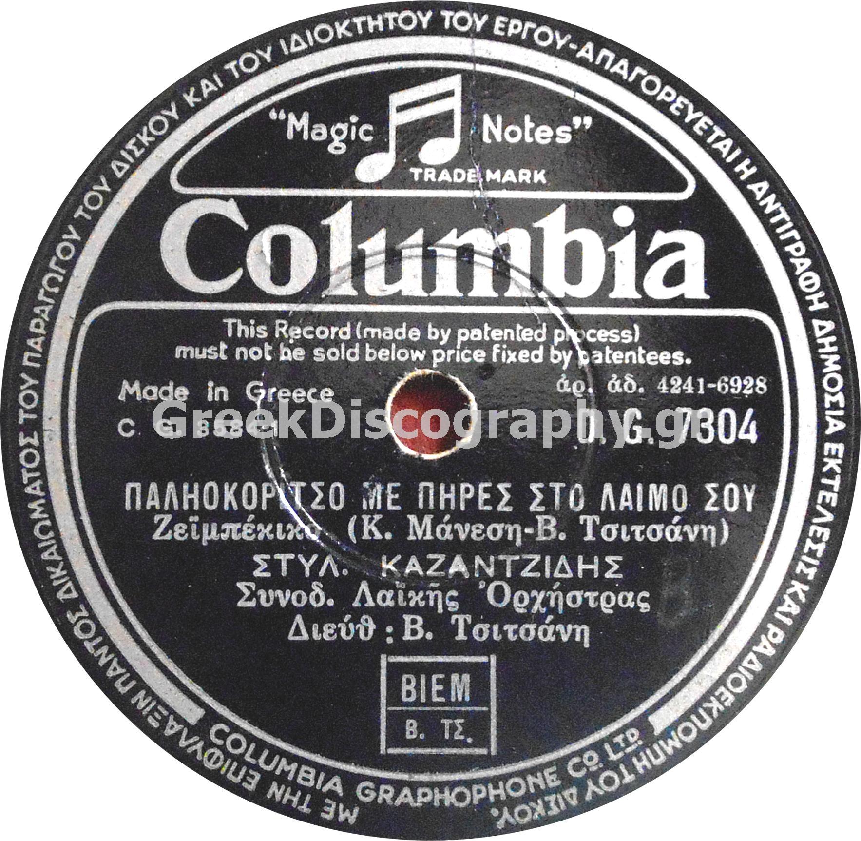 • 1419. Παλιοκόριτσο με πήρες στο λαιμό σου - Τσιτσάνης Β. - Καζαντζίδης Σ. - DG-7304