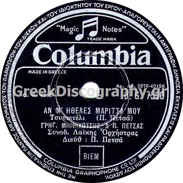 • 16356. Αν μ ήθελες Μαρίτσα μου - Πετσάς Π. - Μπιθικώτσης Γ. - DG-7520
